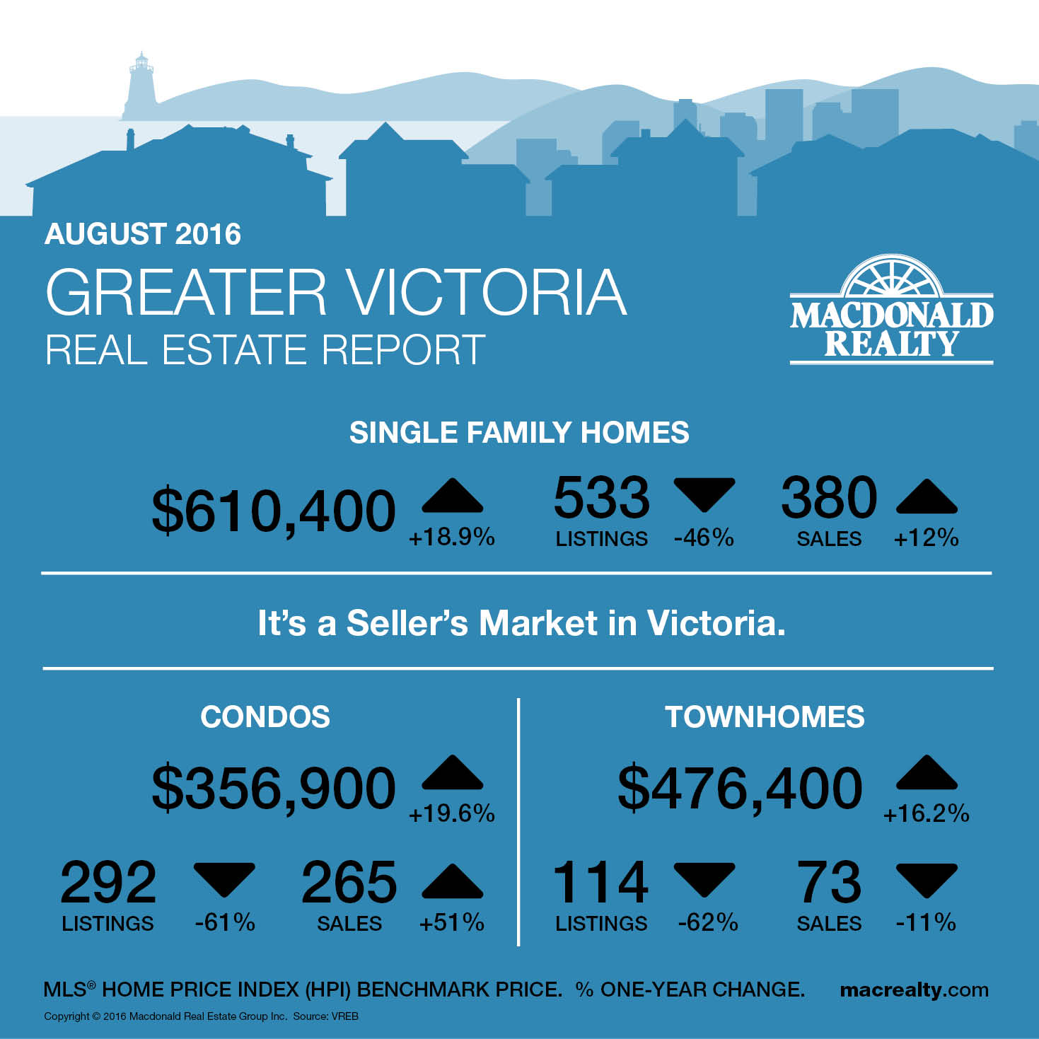 Real Estate Statistics for August 2016 for Greater Victoria